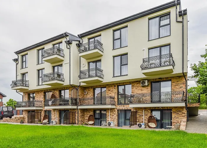 7-slaapkamer Sermiescio Apartamentai, gelegen in Palanga, bevindt zich op 10 km afstand van de luchthaven Palanga. Het appartement omvat een terras met uitzicht op de binnenplaats.